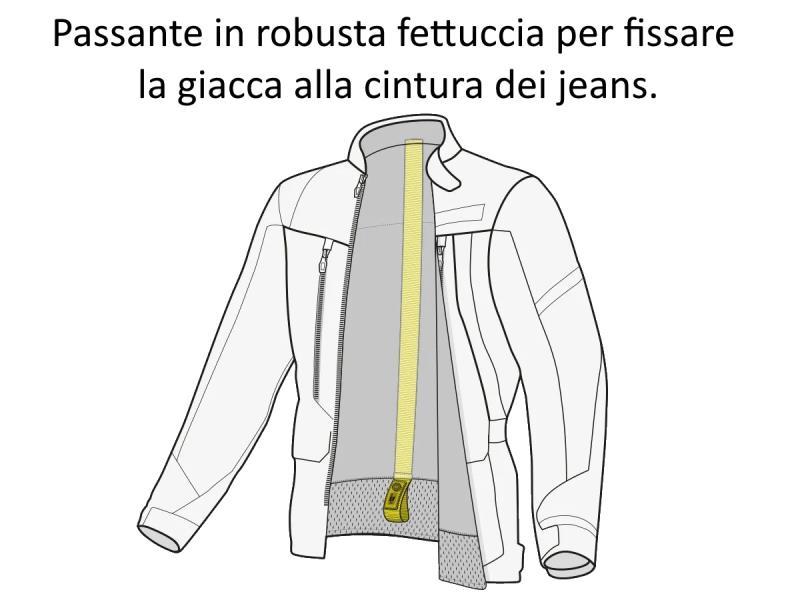 È inoltre dotato di Easy Cuff™ ai polsi, una piccola cerniera che collega gli strati interni della giacca. Sul retro abbiamo inserito il nostro Belt Loop™ che consente di collegare la giacca alla cintura dei jeans.