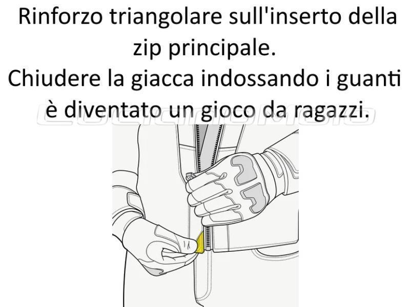 La ventilazione si crea facilmente lungo tutta la lunghezza della giacca grazie al nostro Summer Comfort System™. Apri la zip principale e collegala alla seconda possibilità di zip per scoprire la rete accanto alla zip principale. Un altro differenziatore si trova nella parte inferiore della zip principale. Questo rinforzo, chiamato Zip Grip™, ti permette di chiudere la zip con facilità, anche con i guanti.