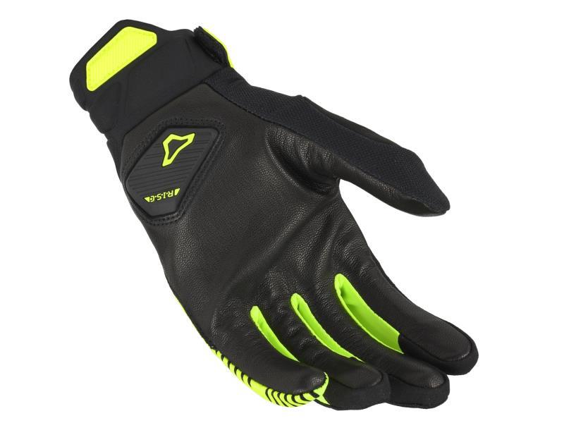 Un guanto con polsino corto con schiuma temprata sulle nocche e imbottitura in EVA sul palmo, adatto per i motociclisti in condizioni di guida calde.