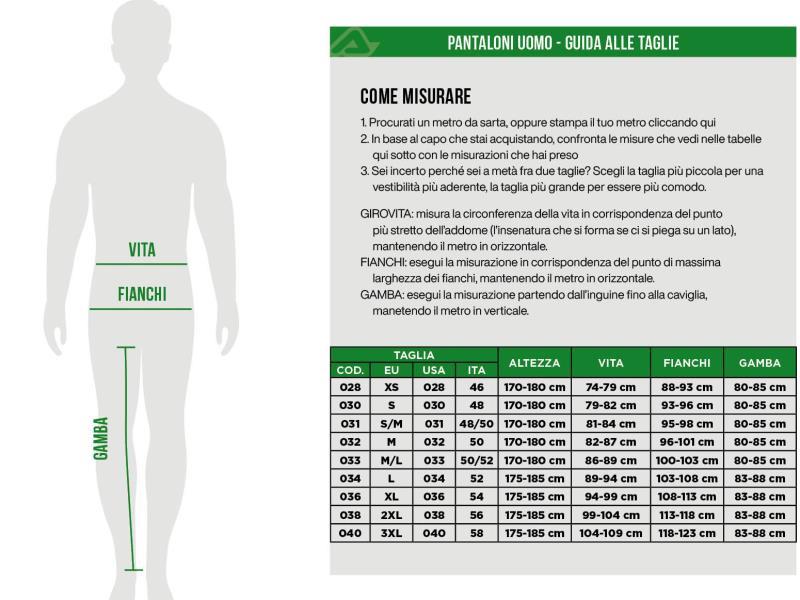 Inserti elasticizzati nella zona del polpaccio, del cavallo anteriore e nella zona posteriore per migliore mobilità