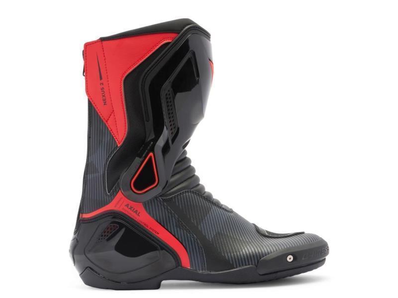 Gli stivali moto sportivi Dainese Nexus 2 sono realizzati in microfibra e D-Stone, con inserto in nylon in corrispondenza del tacco. Dotati di slider sostituibili in termoplastica, l'esclusivo sistema protettivo Dainese Axial Distorsion Control System e inserti in Nylon sul tallone, garantiscono alti livelli di protezione, massimo comfort e leggerezza.