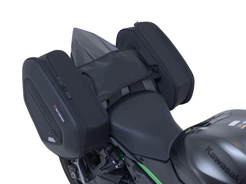 La versione alta delle borse laterali PRO BLAZE è stata sviluppata appositamente per le moto dotate di scarico posto in alto. Grazie alla posizione rialzata, le borse non risentono dell'irraggiamento termico provocato dallo scarico. SW-MOTECH realizza questo set di borse con barre distanziatrici corrispondenti per Kawasaki Z650 e Ninja 650.