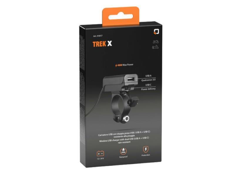 Prima dell'acquisto verificare, tramite personale qualificato, la possibilità di montaggio sul proprio veicolo.Trek X, Caricatore usb con doppia presa USB (USB A + USB C) resistente alla pioggia