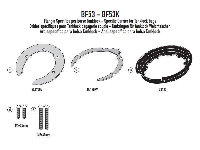 Prima dell'acquisto verificare, tramite personale qualificato, la possibilità di montaggio sul proprio veicolo.Flangia specifica per l’utilizzo di borse da serbatoio TANKLOCK, TanklockED