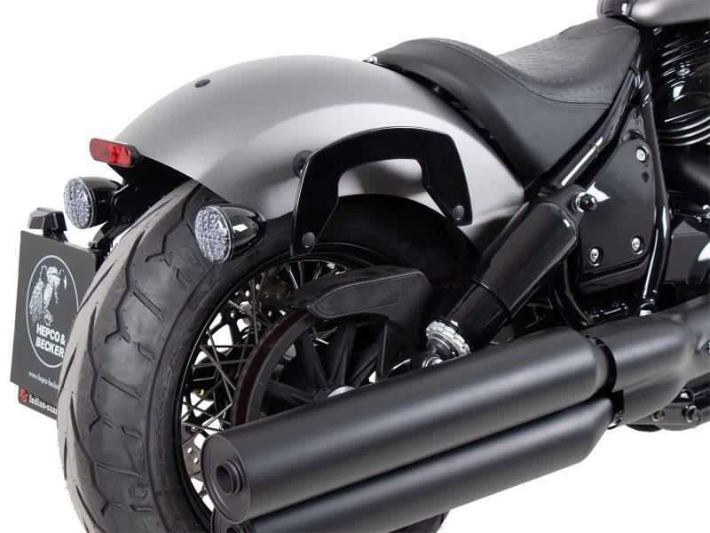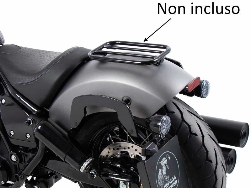 è stato progettato per ospitare un'ampia gamma di Hepco&Becker Borse. Le borse morbide per moto sportive e dinamiche e le borse da sella per chopper e cruiser possono essere fissate alla moto con il supporto C-Bow. Il suo design elegante e discreto si integra perfettamente con le linee generali del veicolo. Naturalmente, tiene le borse al sicuro dal silenziatore di scarico caldo. Grazie alla moderna tecnologia C-Bow, le borse abbinate possono essere fissate al C-Bow in modo semplice e facile con un solo clic e bloccate per evitare i furti. Le borse sono fissate in modo sicuro alla moto e rimangono in posizione anche quando sono cariche. Su molti modelli, gli indicatori di direzione rimangono nella loro posizione originale. Ulteriori informazioni sono disponibili nelle istruzioni di montaggio.