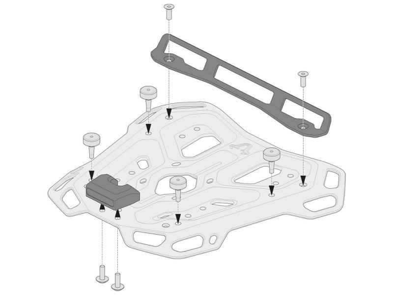 Kit adattatore per il fissaggio dei seguenti bauletti Shad al portabagagli ADVENTURE-RACK: SH48, SH 49, SH50, SH58x, SH59x e TR48 Terra.