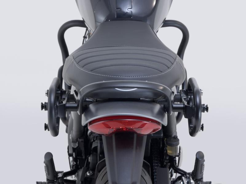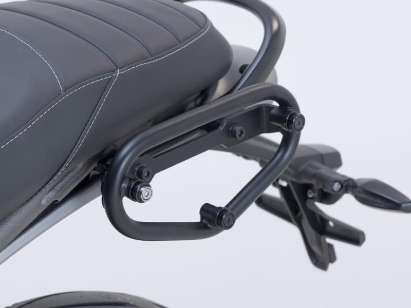 Lo sviluppo preciso e specifico del modello dei telai portaborse consente un'installazione facile e sicura sui punti di fissaggio originali del veicolo. Grazie al sistema a chiusura rapida è possibile montare e rimuovere le borse laterali con pochi gesti della mano, senza per questo dover rinunciare a un fissaggio della borsa affidabile. Il telaio portaborse SLC offre una tenuta sicura per le borse laterali Legend Gear LC1/LC2, le valigie laterali URBAN ABS, le SysBag con piatto adattatore, la piastra di fissaggio laterale universale e la tabella portanumero.