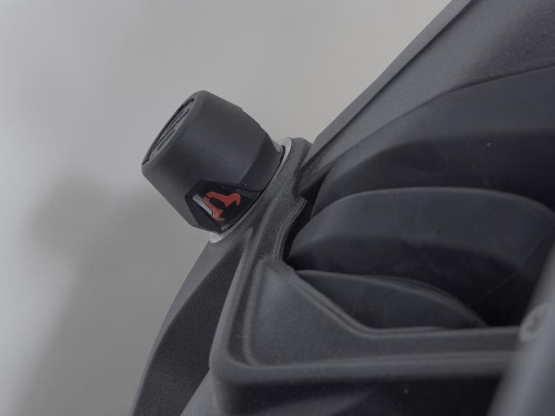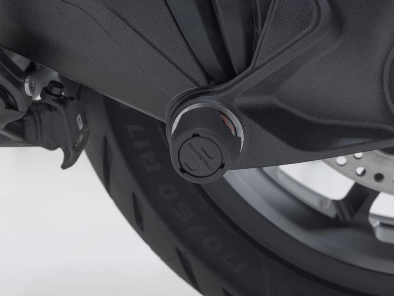 I tamponi di protezione per l'asse posteriore, in plastica resistente all'abrasione, proteggono il braccio oscillante in caso di caduta. Con un contenuto di fibra di vetro del 30%, il nucleo dei tamponi di protezione è resistente agli urti. La superficie liscia garantisce inoltre eccellenti proprietà di scorrimento. Il logo del toro, rosso e lucido, contraddistingue visivamente con forza la tua moto.