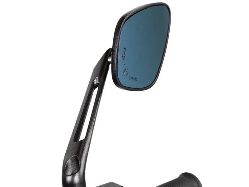 L’asta alleggerita in alluminio CNC, con lavorazione a intaglio centrale, consente di ridurre il peso complessivo mantenendo un’elevata rigidità e resistenza. Il vetro azzurrato antiriflesso a superficie convessa assicura un campo visivo più ampio, migliorando la percezione dell’ambiente circostante e aumentando la sicurezza in ogni condizione di guida.