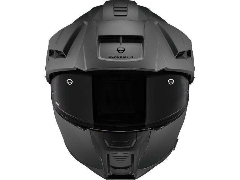 Il nuovo frontino dell'E2 è stato sviluppato nella galleria del vento SCHUBERTH per ridurre al minimo scuotimenti e vibrazioni. L'E2 offre al rider molteplici configurazioni. Il frontino è stato infatti progettato non solo per essere facilmente regolabile su 3 posizioni, ma anche per essere facilmente rimosso.