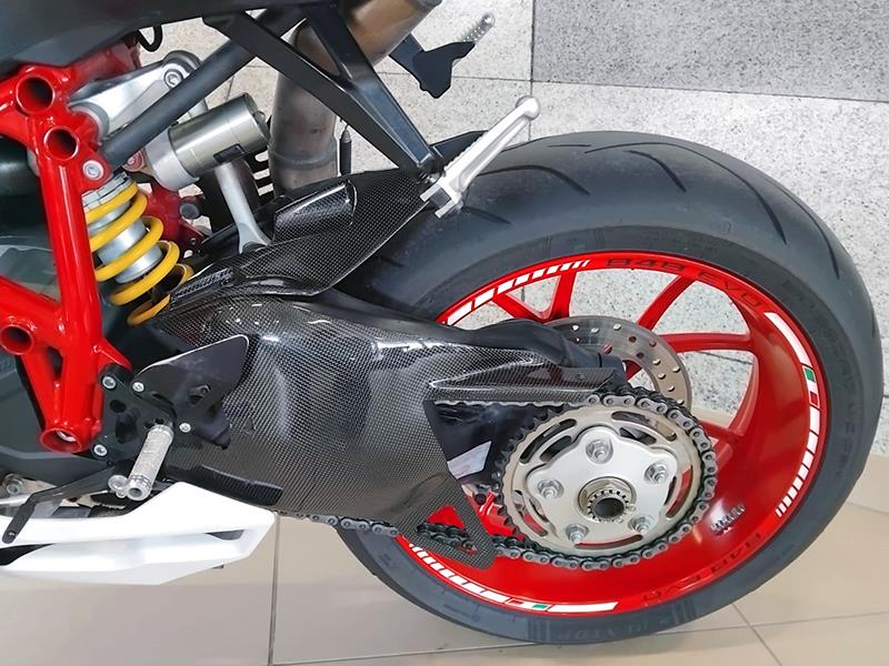Splendide condizioni, accessoriatissima, scarico completo D.70 Termignoni con centralina e filtro aria dedicati, cambio elettronico IRC, pistoncino frizione maggiorato Ducati, Performance, pedane arretrate regolabili, portatarga Lightech, frecce Barracuda, manopole Progrip 717, contrappesi Ducabike in ergal rosso, griglie radiatore, coperchi vaschette olio freni Ducati Performance, grafiche (rimovibili), carene inferiori in tinta con la carenatura, tamponi ruota anteriore, cover forcellone in carbonio, coperchio ispezione volano in ergal rosso, presa USB, sella monoposto e biposto, faro posteriore TST fumè, adesivi antiscivolo serbatoio, cupolino doppia bolla, semimanubri della Panigale (più lunghi di 1,5cm).